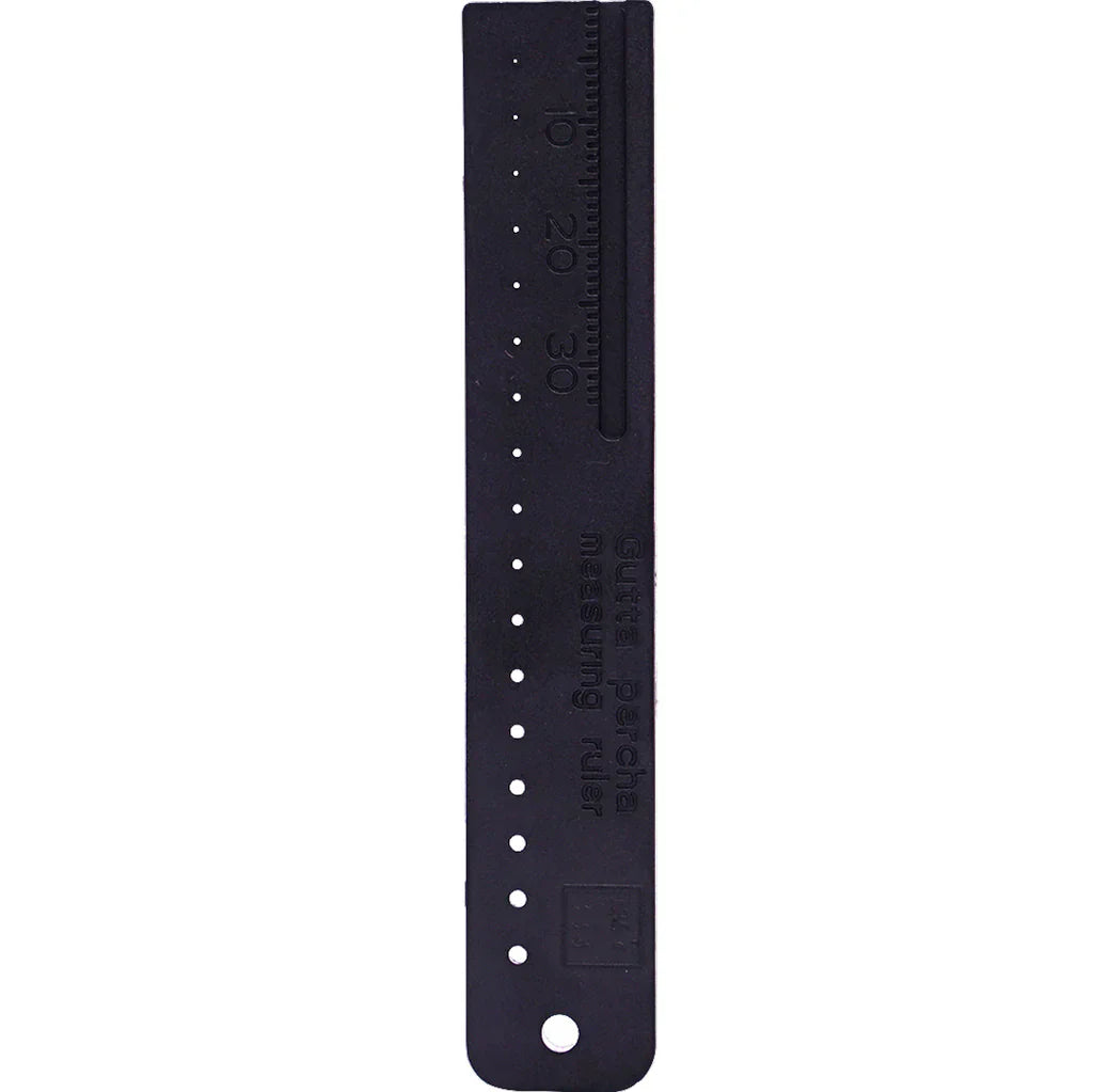 Las reglas milimetradas con calibrador de gutapercha, también conocidas como reglas de endodoncia, son un instrumental utilizado para medir la longitud de las limas, puntas de papel y puntas de Gutapercha. Ayudan a tener de manera raido la longitud de trabajo y medir la calibracion de las conos de gutapercha para tratamientos exitosos.